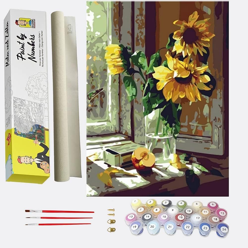 -48% 10,39€ AMAZON DonElton Pintar por Números – 40×50 cm Kits de pintura con Pinceles, colores acrílicos y lienzo de lino, Sin marco – Regalo creativo (Girasol). Hasta el 22nov.