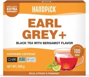 -46% 5,40€ AMAZON HANDPICK, Bolsitas de Té Earl Grey (100 Unidades) | Fuerte, Aromático con Sabor a Bergamota y Cítricos | Bolsitas de Té Redondas – Sin Gluten, No Transgénico | Directo del Origen. Hasta el 1dic.