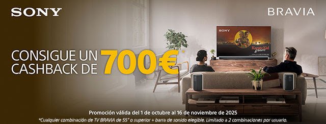-700€ SONY Reembolso al comprar barra de sonido + TV Sony Bravia 55″ o más. Del 1 oct a 16 nov. Es necesario rellenar formulario de solicitud de reembolso.