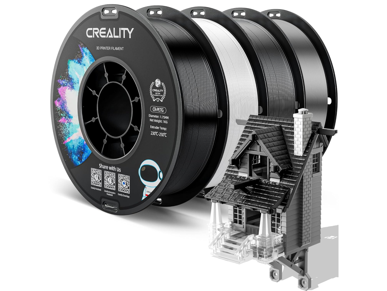 25,69€ Ahorras 51% – AMAZON – Creality Filamento PETG 1.75mm, Fuerte Tenacidad, Inodoro, Mejor Fluidez, Impresora 3D Filamento Precisión Dimensional +/- 0.03mm, 4KG PETG Negro+Blanco+Gris+Transparente 2026-04-19